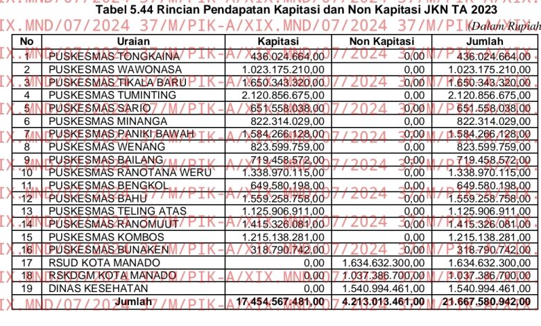 MANADOLINK – Angka retribusi pelayanan kesehatan cukup fantastis menyentuh Rp. 4,213 miliar yang dinyatakan tidak disetorkan ke Rekening Kas Umum Daerah (RKUD).