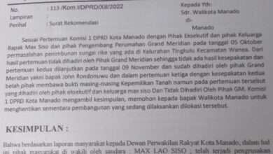 MANADOLINK – Surat rekomendasi resmi Komisi 1 Dewan Kota Manado bernomor 113/Kom.1/DPRD/XII/2022 perihal surat rekomendasi yang ditujukan kepada Walikota Manado,…
